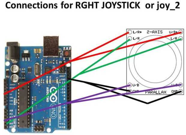 GND y GND es de un terreno en el arduino L/R y l/r va a la conexión analógica Arduino A4 U/D y U/D va a la conexión analógica Arduino A3