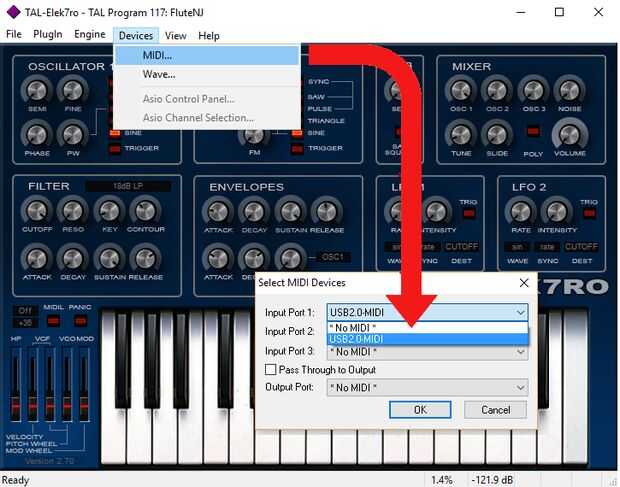 Para ejecutar un plugin necesita cambiar el nombre (o copiar) savihost.exe para que coincida con el nombre del archivo dll de plugin vst. Después de ejecutar el exe nuevo, asegúrese de activar midi en menú 'dispositivos>'Midi' y el 'Puerto de entrada 1' en el dispositivo de midi2USB (ver primera foto).
