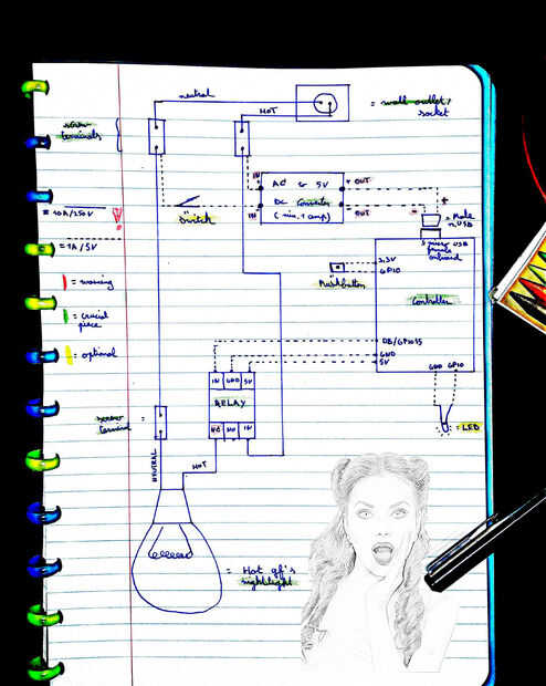 LEDS (he añadido un led en serie con el pulsador porque hace prueba de la manera más fácil, que también he añadido que un azul brillante led que puede programarse y encendido por separado para encontrar el baño por la noche)