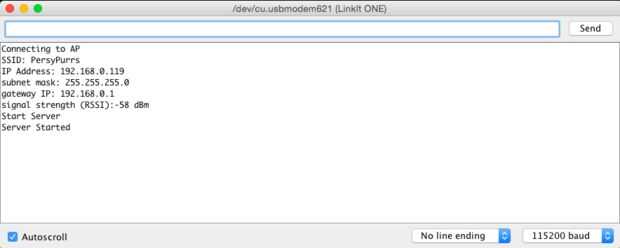 El monitor serial debe ahora escupen dirección IP de LinkIT una. Escriba para más adelante.