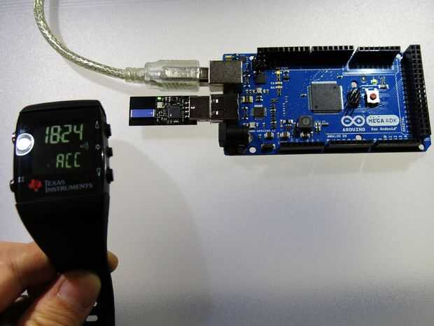 El de Texas Instruments eZ430 Chronos es un gadget cool. Cuenta con comunicación de radio bidireccional y un montón de sensores: temperatura, presión, aceleración.