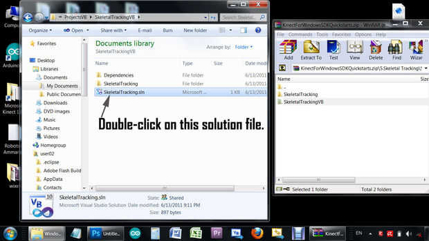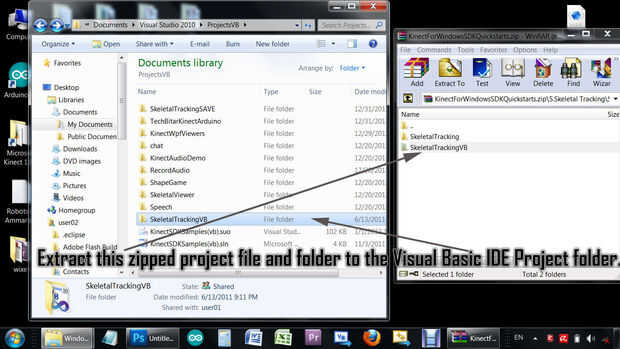 -Encontrar y extraer la carpeta SkeletalTrackingVB y colocarlo en la carpeta de proyectos para el Visual Basic 2010 Express.