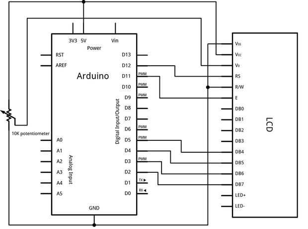 Necesitamos aprender a cómo utilizar esta pantalla, por lo que he incluido un poco de información sobre esto. Arduino tiene ya una biblioteca para el LCD, así que tenemos que incluir esto. Podemos lograr esto escribiendo en nuestro código antes de la instalación, #include < LiquidCrystal.h > . Ahora nuestra biblioteca LCD está incluido. La siguiente cosa a hacer es decirle a Arduino qué pins nos montan a la pantalla LCD. Hacemos esto escribiendo esto antes de la función de la configuración, LiquidCrystal lcd (12, 11, 5, 4, 3, 2); Estos son los pines de de que Arduino enviará datos al LCD a través.