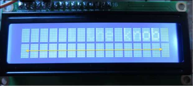 Ahora, vamos a poner algo de texto en la fila inferior. Si usted recuerda, tenemos que compensar el cursor. Lo hacemos escribiendo en lcd.setCursor(0,1);
