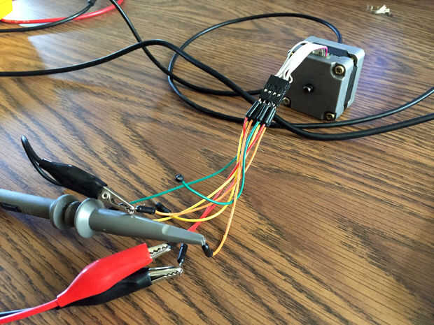 Con muchos alambres allí es variación tanto en conectar todo puede rápidamente frustrarse tabla flip. Pinout es relativamente fácil de determinar para el motor bipolar de 4 pines, no es tanto así para el perno 8. Pero no se asuste por nuevo alambre barba de ancho del motor, es todo solucionable por cada herramienta residente de tienda electrónica – osciloscopio. (Si no tienes uno, haz uno.)