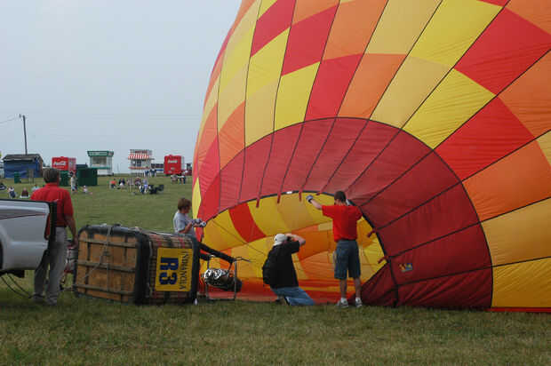 Corbata de: Una cuerda que ancla la canasta y balón para el vehículo de persecución. El empate de mantiene el globo seguro en caso de una repentina brisa durante el inflado.