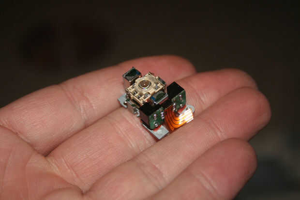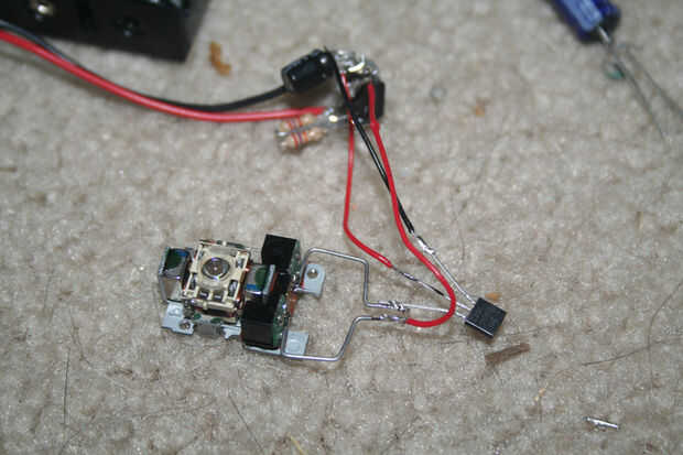Ahora, usted necesita conectar el "ojo" al circuito. Habrá conexiones de 4-6 en el ojo. tomar una fuente de la batería o la energía y los contactos para ver cuales hacen la bobina salta de la prueba. algunos contactos hará que se deslice a un lado, algunos hasta algunos. usted conseguirá la idea. Cuando usted tiene el derecho de los...