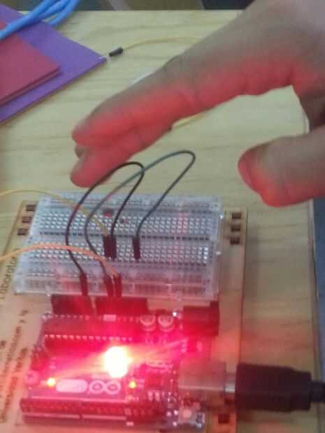 PIN analógico int _analogPin = 0; LED PIN int _pinLED = 13; void setup() {//SERIAL puerto de depuración Serial.begin(9600); //CONFIGURING salida de PIN LED pinMode (_pinLED, salida);} void loop() {//READING valor analógico de PIN int valor = analogRead(_analogPin); //TURN de PING LED digitalWrite (_pinLED, LOW); //DEBUGING valor en Serial.println(value) SERIAL del MONITOR de ARDUINO; si (valor < = 720) {digitalWrite(_pinLED,HIGH); delay(1000);} //TURNING encendido si (valor < 780 & & valor > 720) {digitalWrite (_pinLED ALTO); Delay(100); digitalWrite(_pinLED,LOW); Delay(100); } //WAITING 10 delay(10) MILISEGUNDOS; }