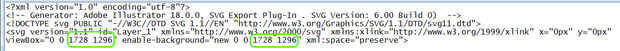 La forma más sencilla para crear la cabecera es guardar un archivo en formato SVG desde el programa de vectores se utiliza, y luego para copiar este texto en otros archivos SVG. Una cosa a vigilar es el tamaño del documento. Con Illustrator, si abre un archivo SVG, por defecto el tamaño de la mesa de trabajo del último documento trabajado con. Para hacer la vida fácil, yo sugiero abrir un documento nuevo del tamaño deseado de la mesa de trabajo (24 x 18" en mi ejemplo) y el tamaño del documento en SVG para que coincida con (multiplicar por 72 para obtener el número correcto de puntos, 1728 x 1296 en mi ejemplo), de lo contrario podría haber un desajuste entre las unidades de Excel y de AI.