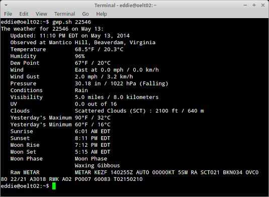 tiempo del gato | grep "Ráfagas de viento" | cabeza -1