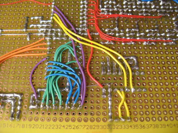 3) soldadura en lugar de un jefe de 4 pernos 0,1" con un perno quitado. Conectar la clavija al lado del que fue eliminado en la tierra.