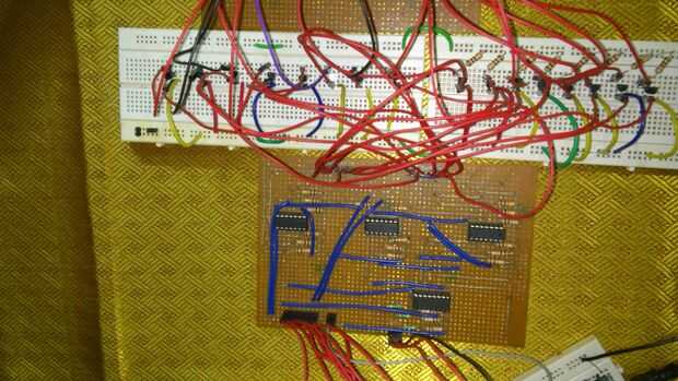 16 MOSFET (2n7000a), resistores * 28 (100 k ohmios), ohm(11) de 100 resistores, resistores * 8 (100 ohm o 220 ohmios o 1 ohmio de k según el brillo deseado utilizamos 100 ohm). En este circuito que hice uso de 3 no puerta IC, IC de DMUX 3 de 1 a 8, 16 Mosfets, resistore y cables. Las puertas no utilizadas son simplemente como una etapa intermedia entre las salidas de pin del microcontrolador y el base del mosfet y este no es realmente necesaria ya que la base de lo mosfet tiene alta impedancia y el microcontrolador puede utilizarse para conducirlos directamente.