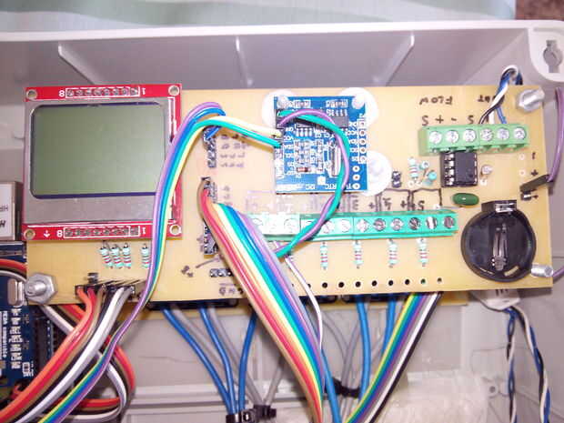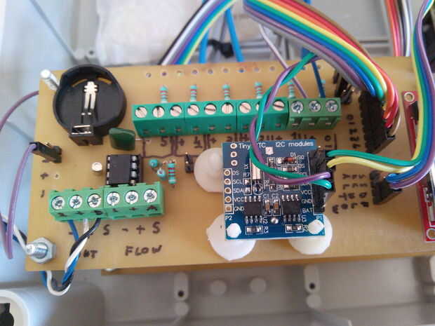 En el tablero también he añadido 2 más conectores, llamados A y B, en la parte inferior del tablero. El conector de B se utiliza para fijar el sensor de humedad/temperatura de DHT22, y el conector es para uso futuro (control de flujo).