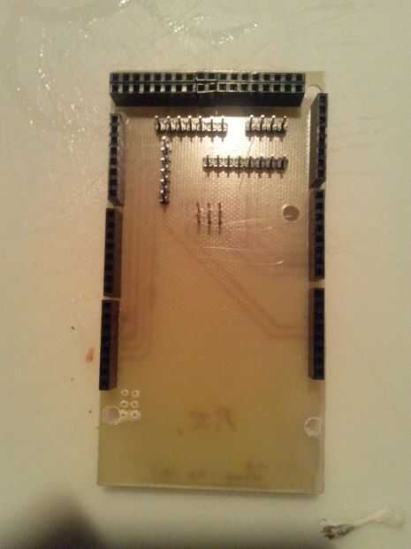 Deje que el pcb se refresca abajo un poco, sumergir la placa en agua por algunos minutos, luego empezar a quitar el papel. Si todo ha ido bien, el toner debe permanece en el cobre. Utilice la pluma de cd para fijar las pistas si encuentras alguno roto. Utilizar guantes y un par de gafas y llene una caja de plástico con algún ácido, luego sumergir la placa en. Deje que el ácido coversPrint y etch Datura escudo, escudo de sensores y relés escudo completamente las juntas. Si te mueves constantemente el cuadro, el ácido eliminará el cobre expuesto en unos pocos minutos (15-30 minutos). OK, cuando termine, lave la placa y limpiar las placas del ácido con agua. Siga los dibujos y taladrar los agujeros para los componentes.