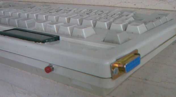 Un tablero perforado con tiras de cobre fue utilizado como una solución de montaje rápido con zócalos DIP para las virutas, sabes, por si acaso! Entonces fueron abiertos los agujeros y cortes para los conectores, el botón de reinicio y la pantalla LCD a través del plástico extremadamente resistente y gruesa del teclado. sí, fue construido hace 25 años! Siguió el lío de cables que emana de la pcb hacia varios periféricos. Una comprobación de continuidad rudimentarios y luego la fuente fue conectado con no fichas sólo para comprobar las tomas de voltajes adecuados. Luego vino en el 2 ICs y el teclado caso fue cerrada por medio de sus broches de plástico en la parte inferior. La unidad estaba lista para grabar sketches en el controlador!