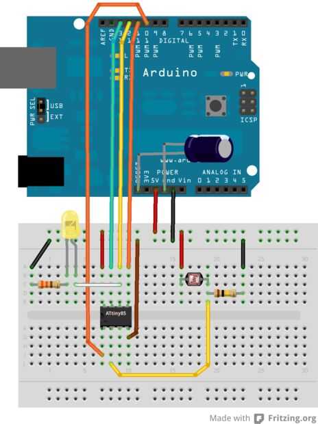 Paso 6: Prototipo y prueba de sensor de luz circuito para ATtiny en protoboard