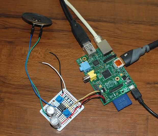Copia de este programa a la RaspberryPi, es un programa sencillo para probar el amplificador y haga los ajustes para el sonido. Debe resultar un zumbador durante cinco segundos.