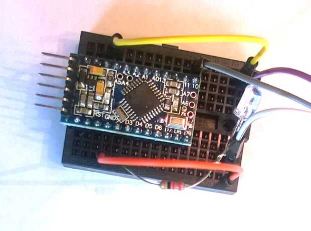 El LED debe conectarse al pin digital 3 (y no olvide la resistencia necesaria para el LED que está utilizando). En mi caso usé un LED azul con una resistencia de 22 ohmios.
