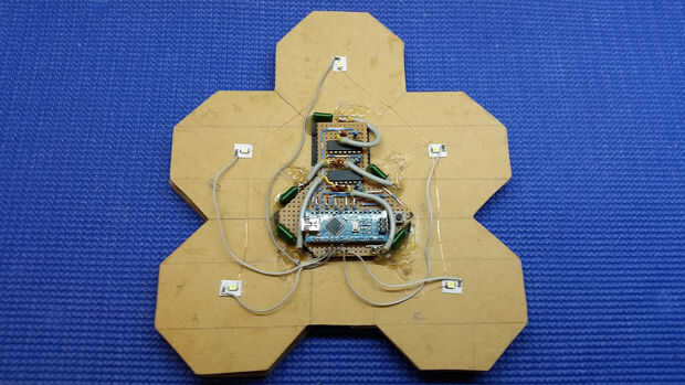 La forma inusual de la placa de circuito fue un intento de mantener el circuito central al dispositivo para evitar interferencias con las bobinas de búsqueda.