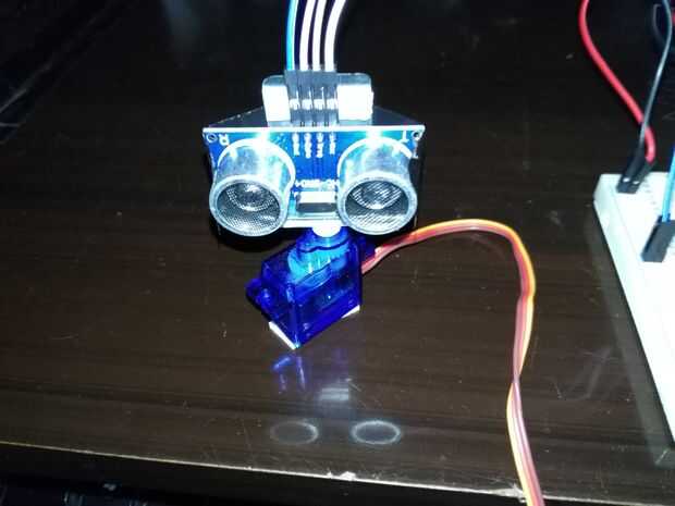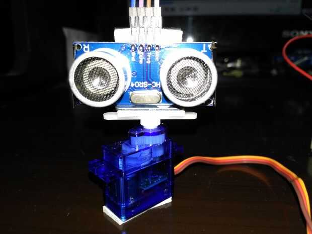 Colocar el sensor de ultrasonidos y el brazo del servo debe hacerse utilizando doble cara cinta y cinta aislante.