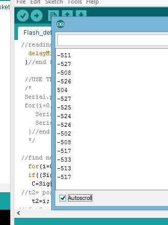 La función de "Señal" es donde la detección ocurre, devolverá el valor más bajo de la matriz (intensidad de la señal de la fuente de IR), que será positivo o negativo dependiendo de si o no se detectó la frecuencia - negativa si se detecta señal.