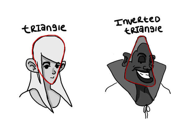 El triángulo también puede ser ajustado a tu gusto, y como se puede ver en la foto, hay dos variantes del triángulo, el genérico, y el Triángulo invertido. El triángulo es divertido para jugar con el, porque le da el carácter de una mirada interesante (tal vez es un extraterrestre, tal vez es una condición, no juzgo).