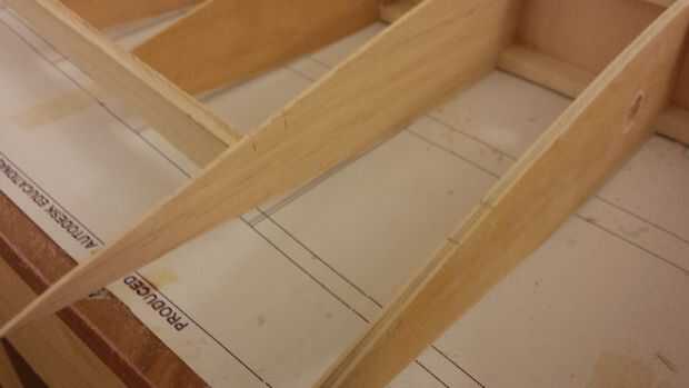 Para construir los alerones es más fácil de construir mientras que el extremo de las costillas que se utilizará para hacer que estén fijados a las alas. Las aletas no son se construye de esta manera desde las costillas en que sección del ala son las costillas reforzadas que se hicieron para el aterrizaje. Las aletas se construirá más adelante. Una vez que se construyen los alerones del borde posterior se instalará en la parte posterior de las costillas. Por último el carenado de la bisagra se instala en el borde superior de la salida trasero.