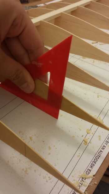 - Con los alerones y bordes de fuga de las costillas que se quite del ala de la arena al final de las costillas hasta que todos estén alineados.