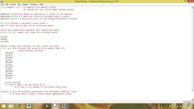 El código es rt(), fd(), explica por sí mismo speed(), pencolor(), lt(), etc., son todas las funciones. Básicamente son instrucciones para Python seguir. El resultado será belleza.