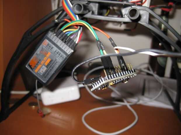 -Enchufe el cable de cable negro de la cámara en un perno de tierra en el Arduino. Si no hay un repuesto, o es más conveniente, se puede introducir en un perno de tierra en la Rx.
