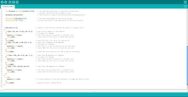 - "Si" la lectura es menos de una distancia especificada necesito el servo grande para girar al bebé dispensador del club de golf