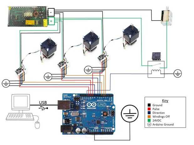 3. Conecte los conductores a Arduino. Controladores de motor la mayoría tienen una dirección, pulso y los cables de tierra común o pulso CW, pulso CCW y tierra. Estos son los que le preocupa sobre todo. Algunos tienen "todas las bobinas de" y otras opciones.