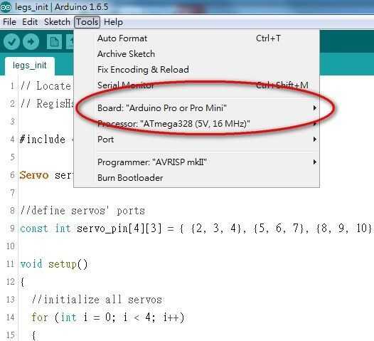 2. reconstruir el "spider_open_v3.ino" y subir al Robot araña