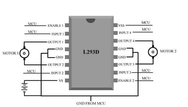 Para cambiar la dirección de nuestro motor utilizamos un puente en H. Un puente H es un circuito electrónico que permite una tensión que se aplicará a través de una carga en cualquier dirección. Leer más sobre cómo funcionan los puentes de H aquí.