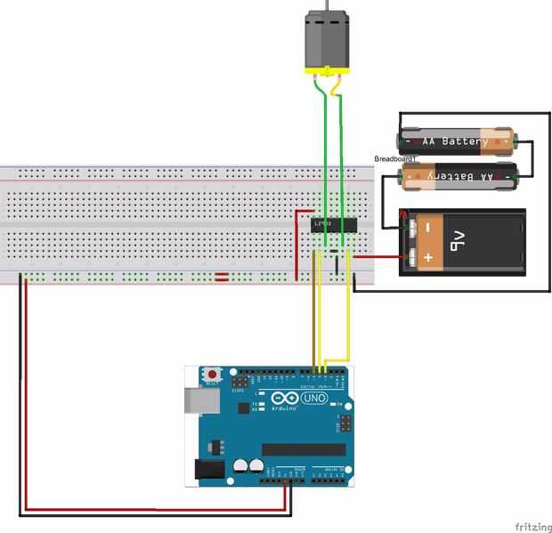 Tip: Puede dejar el motor y baterías. En cambio si se mide el voltaje (con un polímetro) a través de salidas para el motor, usted conseguirá + 5v para un sentido y - 5v para otra dirección.