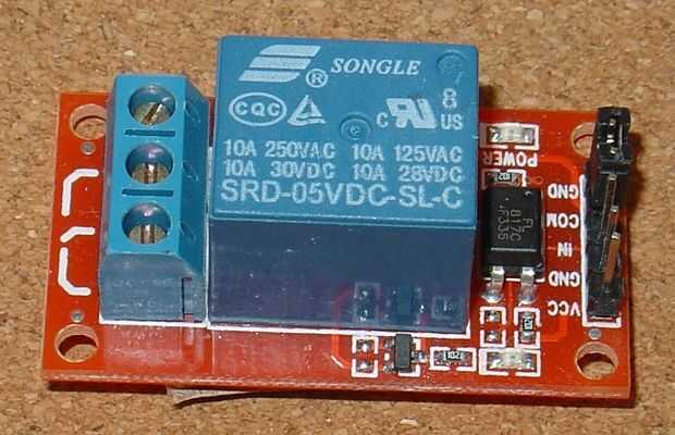 La foto de arriba muestra este cableado. Nota el Arduino es alimentada por la energía del USB 5V. El relé es 5V para que todo esté a la misma tensión.