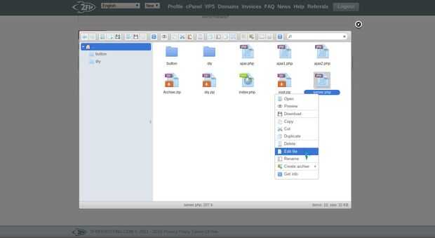 entonces sube el server.zip y extraerlo que necesitamos editar un poco. edición "server.php" archivo .para editar haga clic derecho al archivo y editar goto