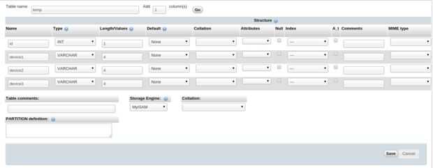 luego rellenar con estos valores (nombre de tabla como temp, luego id, device1, dispositivo2, device3) (se muestra en la foto)