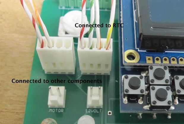 Fije el RTC a 5V, Ground, A4 y A5. En mi escudo personalizado, os adjunto el RTC para el conjunto de I2CB de pins.