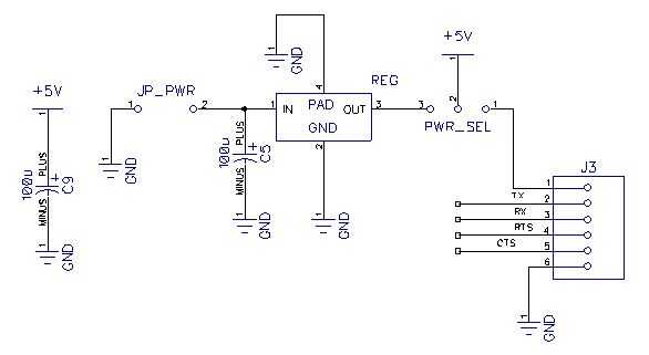 Si usted es absolutamente incapaz de proporcionar cerca de 5V del USB, o la fuente USB resulta para ser demasiado ruidoso, entonces el DPScope permite para utilizar una fuente externa (7.5V / 500mA). Todo lo que necesita hacer es agregar el regulador (REG, un simple regulador lineal 7805) y un condensador de búfer (C5), conectar la alimentación y el puente (PWR_SEL) "fuente externa". REG y C5 son tipos muy genéricos y deben estar disponibles en cualquier hobby electronics almacenar (y en cualquier caso son probablemente ya en su cajón).