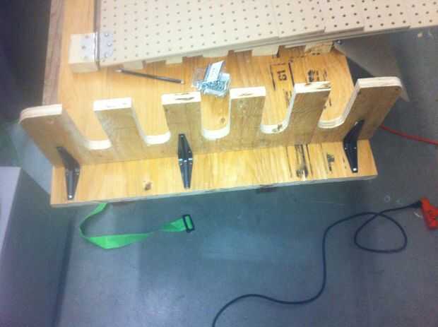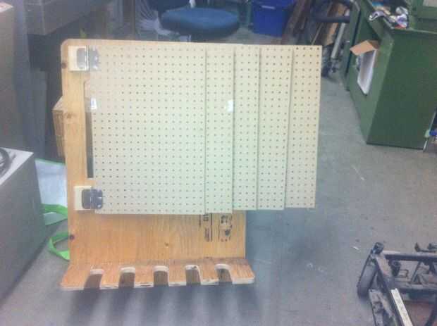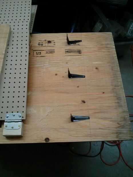 La madera contrachapada que tuve fue un poco más luego necesitaba, así decidí algo luego la parte inferior los residuos, haría un estante para los taladros en. Esto tendría la ventaja añadida de que el peso de los ejercicios de la pegboard. También puede usar el extra para construir estantes regulares o tal vez Coloque una barra magnética o algo.