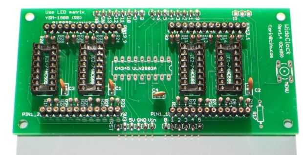 f. insertar y soldar el chip de la matriz de transistores (ULN2803); prestar atención a su orientación, para que su muesca coincida con uno de serigrafía;