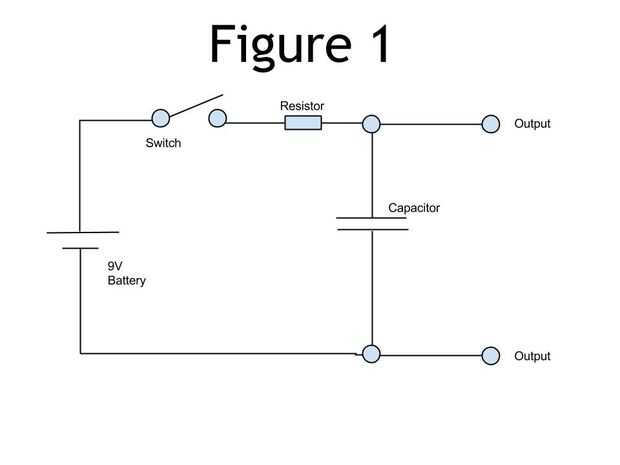 Vea la figura 1: Si el condensador está inicialmente descargado y luego en el momento (t = 0), encienda el interruptor: se levanta la salida de la figura 1 (que es el voltaje en el condensador). Si tuviéramos que medir la tensión con respecto al tiempo, aumentaría como el diagrama en la figura 2.