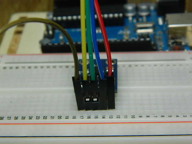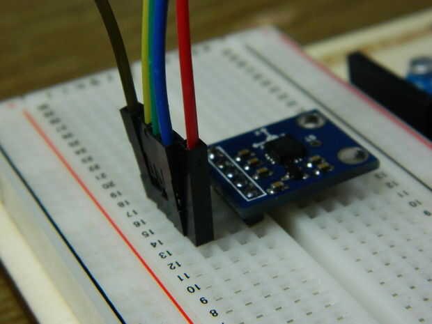 Luego conecte la GY-61, Vcc va a Arduino + 5 Vout y el GND va al pin GND de Arduino.