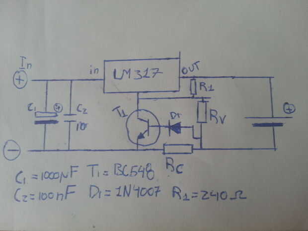 El voltaje de entrada (no regulado) no debe exceder 25V, ya que el lm317 puede conseguir muy caliente (y seguramente lo hará) Por eso es una muy buena idea utilizar un cargador de laptop (son alrededor de 19v).