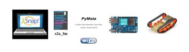 ¿Qué obtienes cuando combinas Snap!, el primer ministro arrastrar y soltar el lenguaje de programación, con un apagado el kit de estante para vehículos rover, un microcontrolador Arduino y s2a_fm interconectan de software?