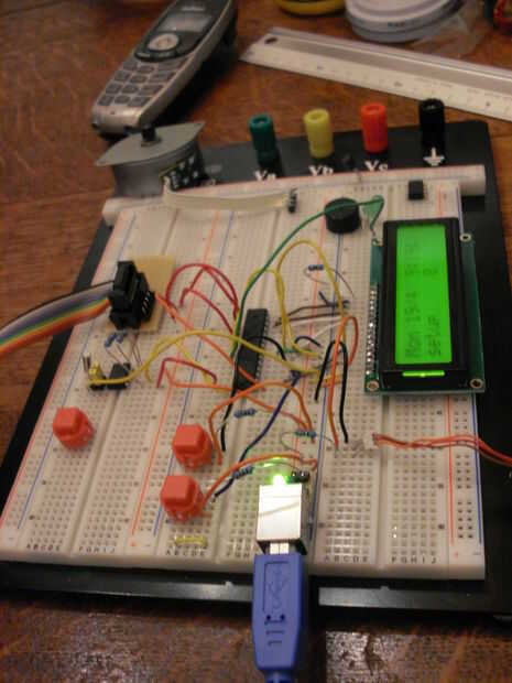 Cuando nos fijamos en el microcontrolador, se puede ver que Port D todo se utiliza para la pantalla lcd y los 2 botones (INT0 y INT1).