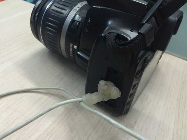 Una cámara réflex digital se comunica con un intervalómetro o un obturador remoto usando a un conector de audio de 2,5 mm. La toma de audio de 2,5 mm tiene 3 terminales