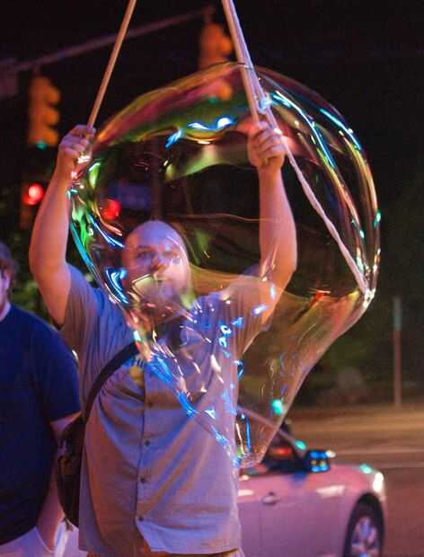 - Retrato: Como fotógrafo, estoy fascinado con expresiones sinceras y sin vigilancia de curiosidad y asombro, y burbujas gigantes estos llevar a cabo fácilmente. He comenzado a trabajar en una serie de retratos en los que mis temas se ven en el momento justo antes de que una burbuja muy grande cumple con su cara. No sólo son las expresiones de las personas en esta circunstancia sumamente interesante, sincero y generalmente encantados, pero los reflejos de sus expresiones como se ve en la burbuja de mostrarlas desde una perspectiva muy interesante y segundo. La habilidad de crear una burbuja muy grande en una posición controlada, como este instrumento permite, es una herramienta útil para este trabajo.