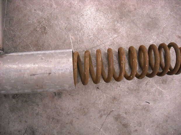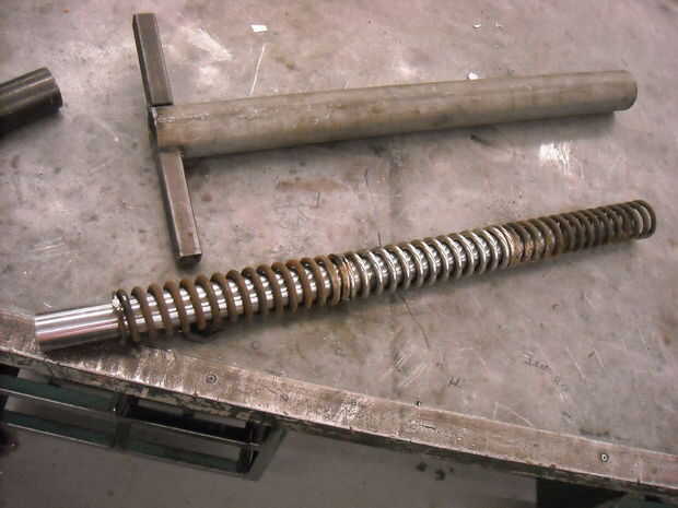 Robaban en la tienda hasta que encontré 2 tubos. El tubo grande caber alrededor de los resortes (que resbalan dentro) y un tubo pequeño que cabe dentro de la primavera. Eran todos unos 3-4 pies de largo. Usted también necesitará encontrar 1" tubo redondo para la barra y las clavijas del pie. El material con que terminó era bastante grueso... sobre 1/8" pared que creo que es demasiado grueso. voy más fino la próxima vez. Me no preocupa tanto fuerza cuando llegan más gruesos pero más bien el proceso de tubería delgada de soldadura MIG. Ahora son muy pesados! Voy a visitar mi lugar de metal de desecho local y ver lo que tienen. Más metal que tienen está doblado para arriba pero eso es bueno porque sólo necesitamos 3-4' piezas largas.
